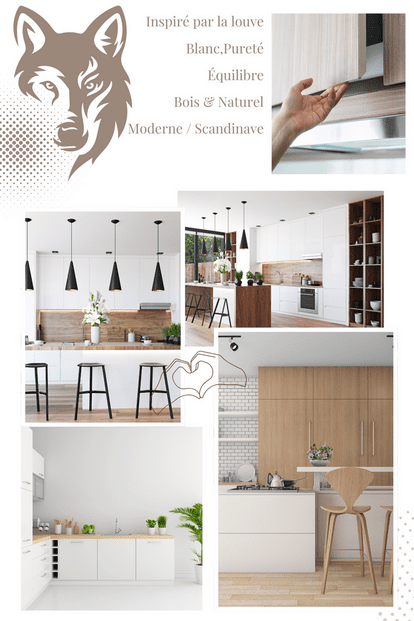 La louve incarne la pureté, l'équilibre et une profonde connexion avec la nature. Pour cette inspiration, nous avons choisi de mettre en avant des éléments qui allient modernité et naturalité, avec une forte influence scandinave.